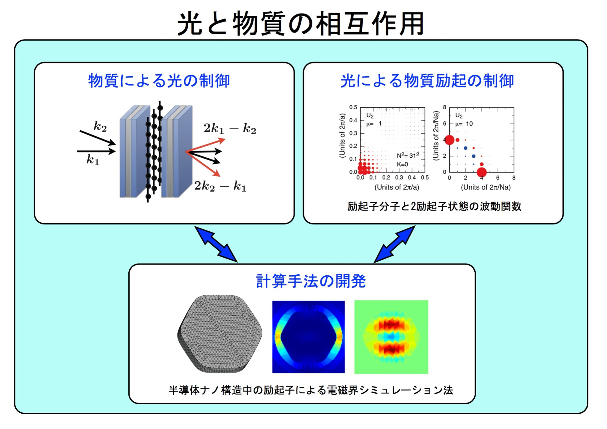 物質の磁性は電子のスピンに由来しますが,電子がぎゅうぎゅうに詰まった強相関系と呼ばれる物質では,電子の電荷や形(軌道)がスピンと結びつくことで普通の磁石と異なる電磁応答が生まれます.私たちは,強相関系の電子状態を理論的に調べることで新物性を探索しています.